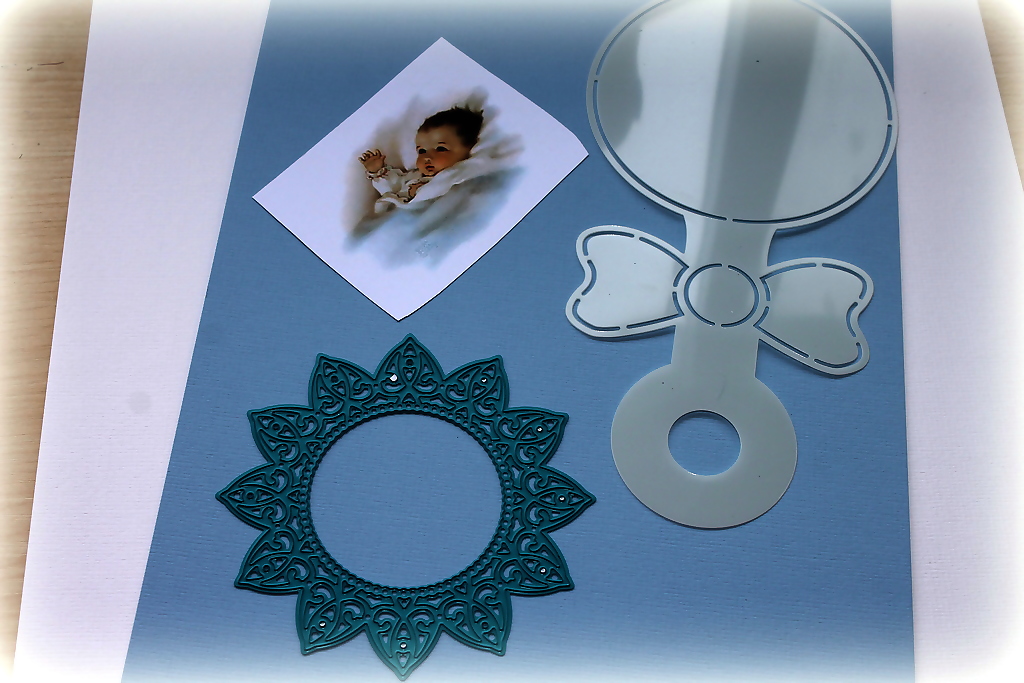 Met 6 Bits & Pieces stempeltjes de 2 gestanste delen bestempeld.